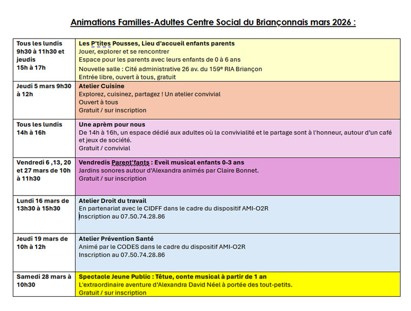 - Plusieurs animations vous sont proposées tout au long de la saison :